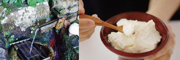 豆腐はその90%が水でできている。使われる水はもちろんタンタン生水の湧き水だ。